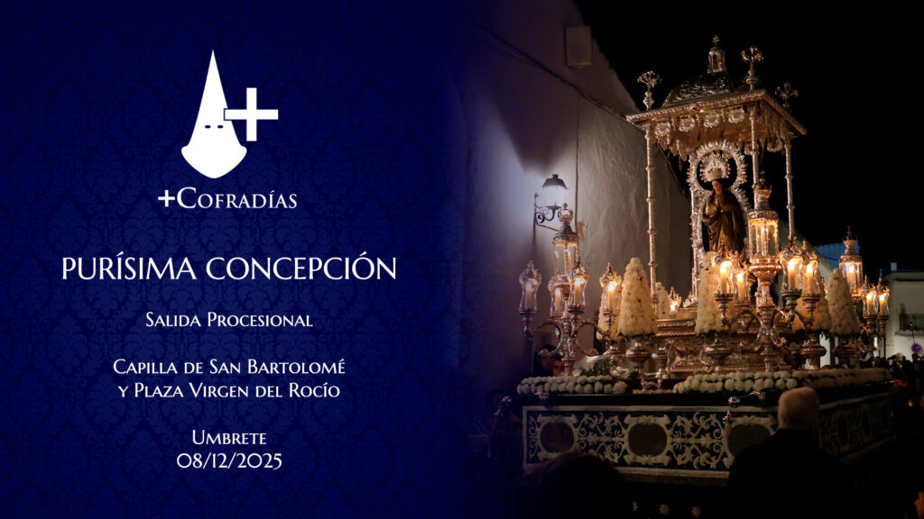 Cada 8 de diciembre, Solemnidad de la Inmaculada Concepción de María, procesiona por las calles de Umbrete la Purísima Concepción de la Reina de los Ángeles. Esta procesión destaca por su carácter solemne en el frío de una noche de diciembre, con el magistral acompañamiento musical de la Sociedad Filarmónica Nuestra Señora del Carmen, de […]
